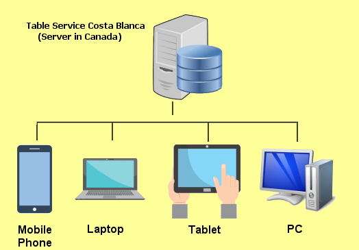 TableService Costa Blanca works on any device, mobile phone (with or without SIM), tablet, laptop, workstation or smart TV.